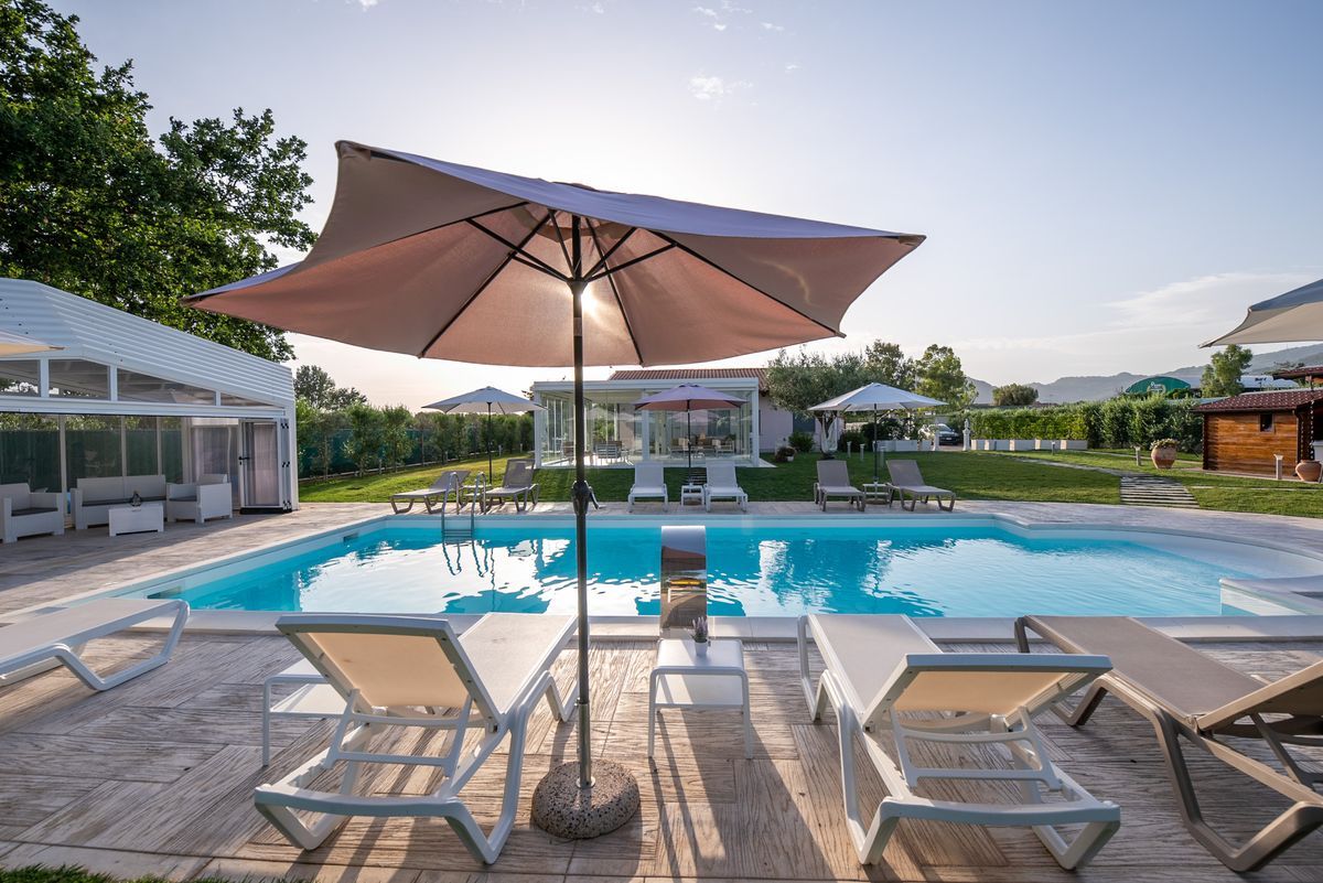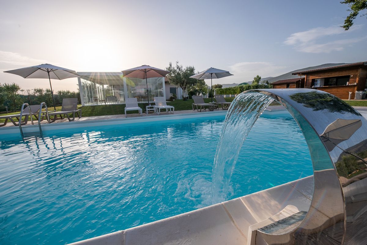 Durante la stagione estiva, la piscina del Rifugio del Tempo diventa il cuore all’aperto della struttura: uno spazio dove le giornate si dilatano e il tempo sembra scorrere più lentamente.