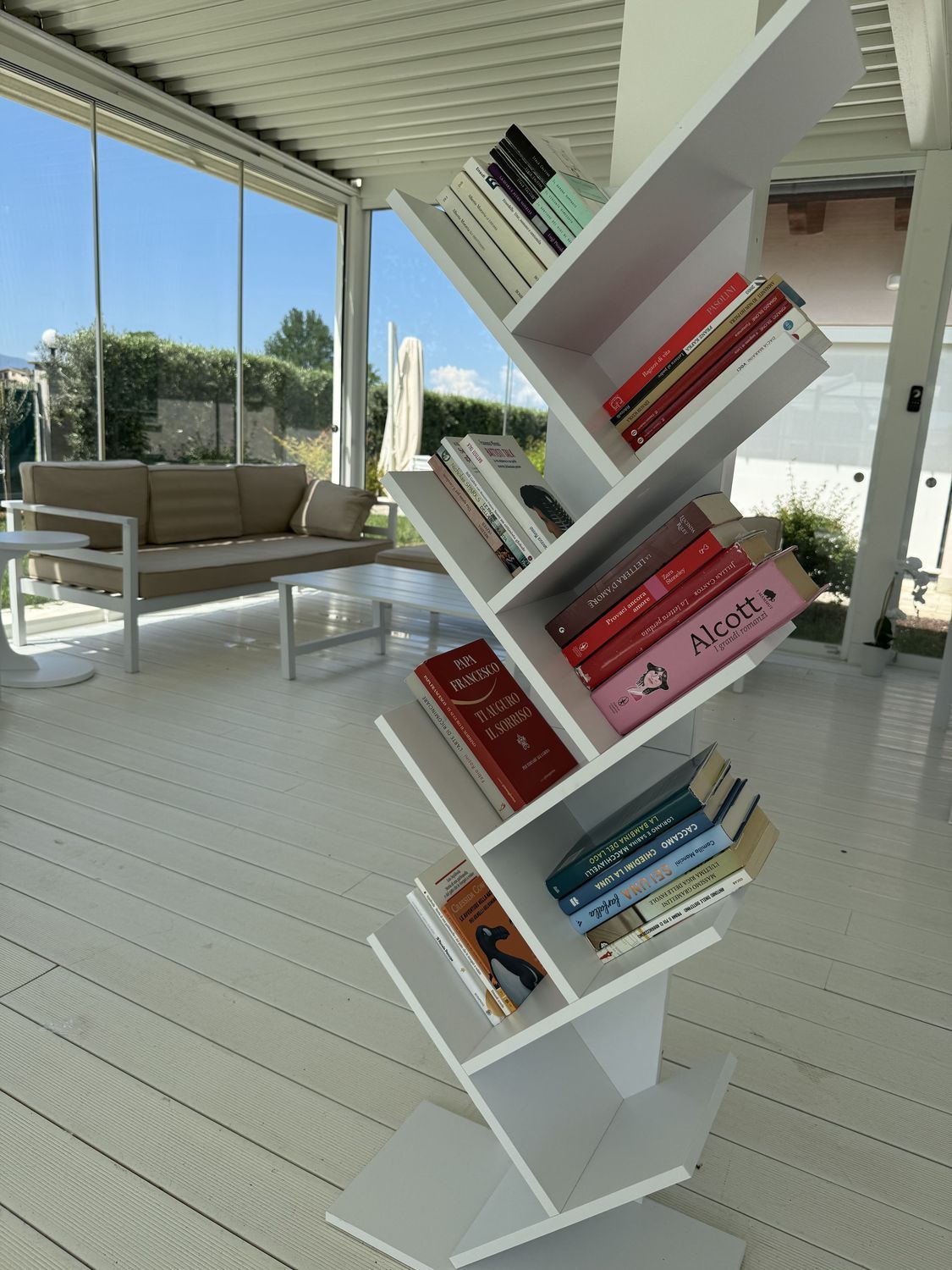 I divanetti creano un’atmosfera informale e piacevole, ideale per leggere, conversare o semplicemente concedersi una pausa. A disposizione degli ospiti anche una selezione di libri, liberamente consultabili, per chi desidera dedicarsi a un momento di tranquillità e trovare nuova ispirazione.