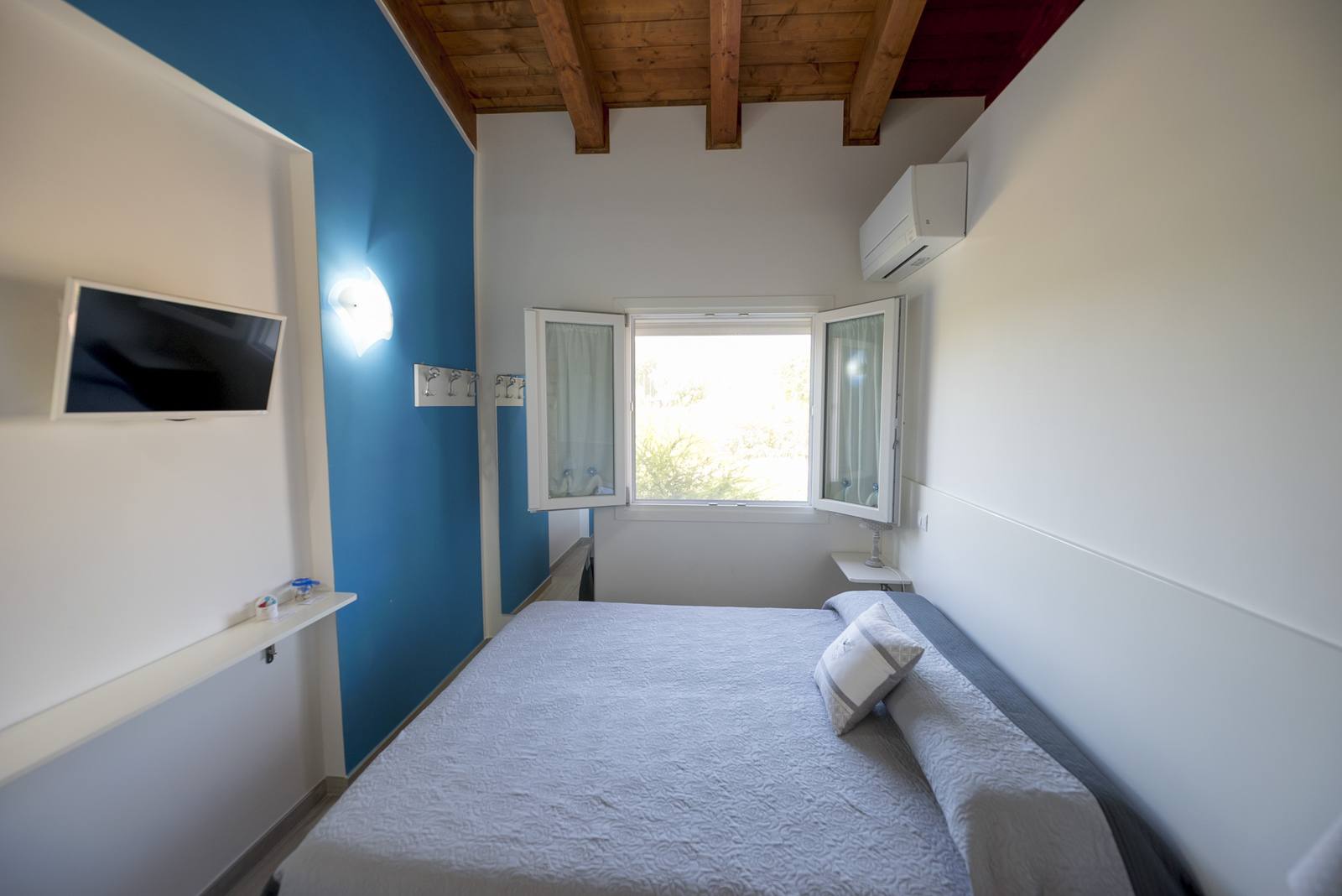 La camera è dotata di letto matrimoniale, bagno interno, TV, Wi-Fi e aria condizionata, assicurando tutto il necessario per un soggiorno rilassante.